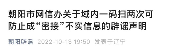 상해소문반박플랫폼 소식에 따르면 상해시빅데이터센터의 관련 직원은 이 온라인소문이 허위정보라고 밝혔다고 한다. 해당 장소를 떠날 때 '장소코드'를 다시 스캔하는 것은 이곳을 떠났다는 것을 증명하는 효과가 없는바 밀접접촉자에 대한 판단은 질병예방통제 등 관련 부문의 류행병학조사에 따라 확인해야 한다.