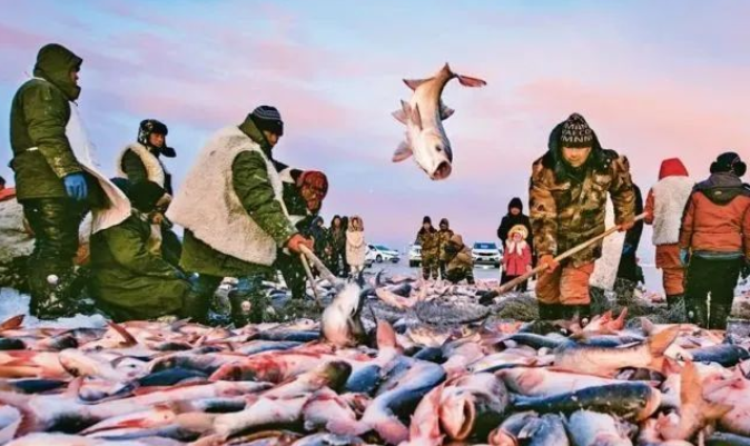 近年来,来自全国各地的游客走进查干湖冰天雪地的晶莹世界,玩冰雪、品鲜鱼,感受千年渔猎文化魅力,观赏冰湖腾鱼盛景。图为2022年1月2日,查干湖冬捕现场。吉林省委宣传部供图