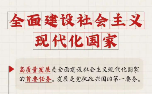 고품질발전은 사회주의현대화국가를 전면적으로 건설하는 선차적 임무이다. 발전은 중국공산당 집권흥국의 선차적 요무이다.