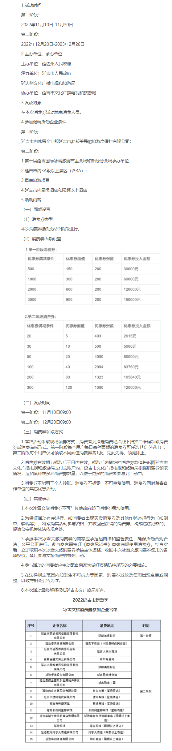 습근평 총서기의 '빙설천지도 금산은산'이라는 중요지시정신을 관철하고 연길시 겨울철 빙설소비를 추동하고저 연변주 및 연길시 인민정부는 80만원을 투입하여 빙설문화관광소비 보조금에 사용하기로 결정했다. 구체적인 제정방안은 아래와 같다.