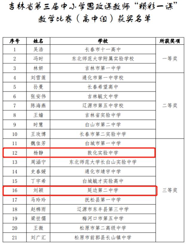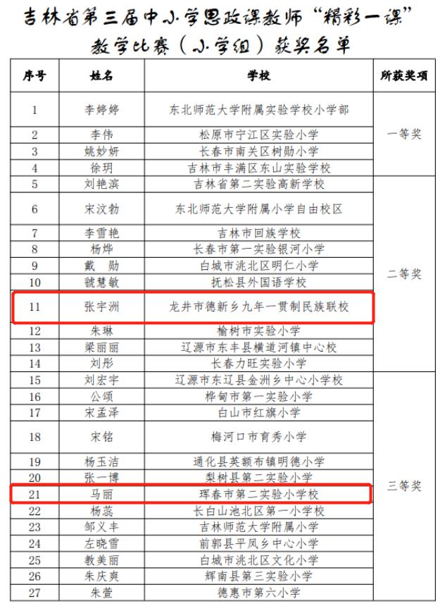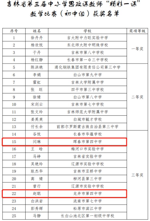 최근 길림성교육청에서 발표한 <길림성 제3회 중소학교 사상정치수업 교사의 ‘훌륭한 수업’ 경연결과에 관한 공시>를 발표했는데 도합 73명의 교사가 수상했다.