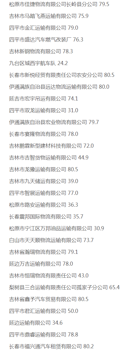 10월이래 길림성공안청 교통관리국은 전 성 교통경찰부문에 고위험기업 중점차량과 운전기사 집중정돈행동을 펼칠 것을 포치하고 전 성 고위험 운수기업을 조사했다. 현재 제1진 기업을 대중에 폭로한다. 평점이 낮을 수록 위험이 높다. 교통운수기업들에서 교통안전 주체책임을 시달하고 교통안전우환을 원천봉쇄함으로써 교통사고를 미연에 방지하기 바란다.