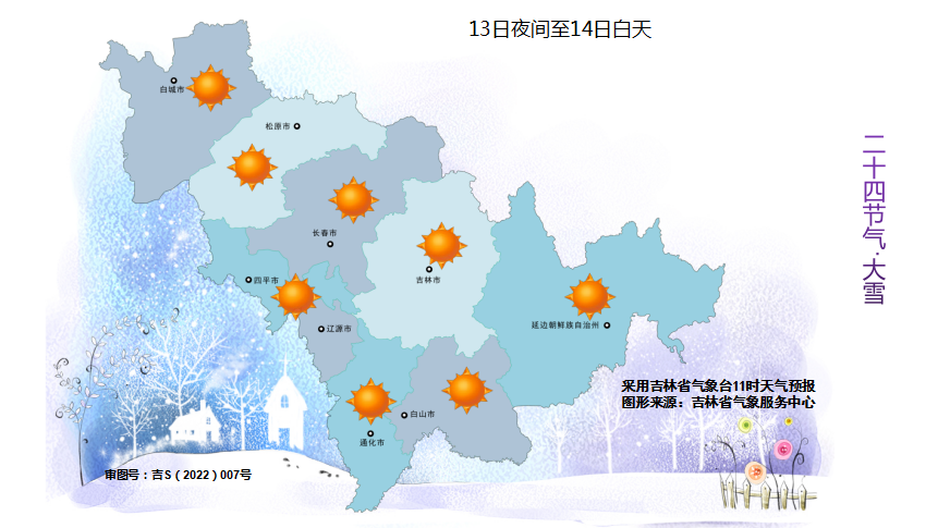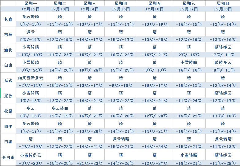 12일 저녁부터 13일 낮까지, 전 성은 구름이 많다가 개이겠으며 백산 동부, 장백산보호구에 적은 눈이 내릴 것으로 보인다.