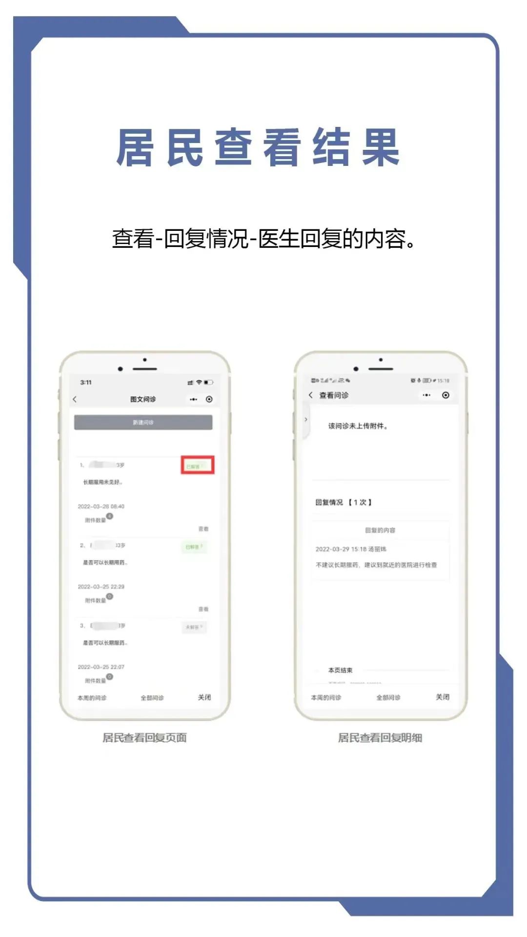 3. 관할구역 가정의사팀이 정기적으로 진찰문자에 회답하며 주민들은 이미 해답한 페이지를 통해 의사가 적은 의료건의를 볼 수 있다.