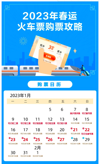 2023년 음력설이 코 앞으로 다가왔고 기차표 15일전 예매에 따라 1월 7일에 2023년 섣달 그믐날(1월 21일) 기차표를 정식 판매한다.