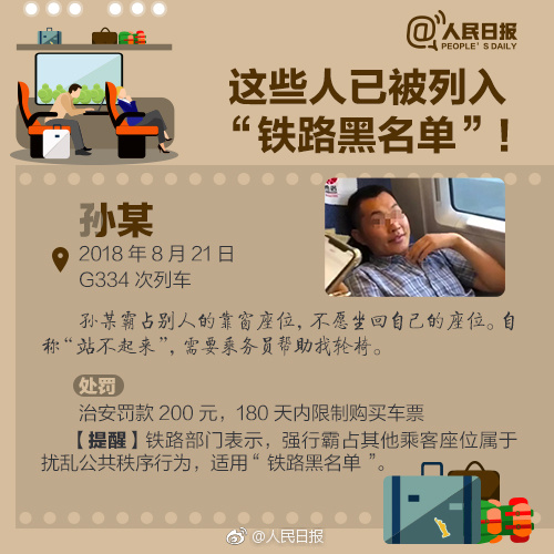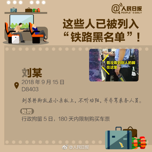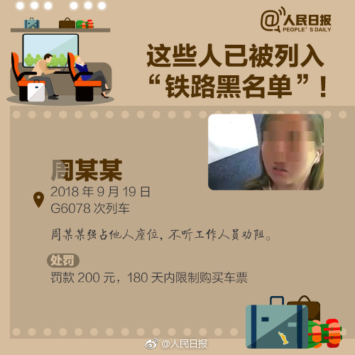 4, 5, 6 행위는 표값을 보충지불하기 전에는 기차표를 구매할 수 없고 1차 표값을 보충지불한 후 1년 안에 3차례 4, 5, 6 상황이 발생하면 보충지불 후 90일내에 기차표구매를 제한받는다. 표값을 보충지불하지 않을 경우 이런 제한은 취소되지 않는다.