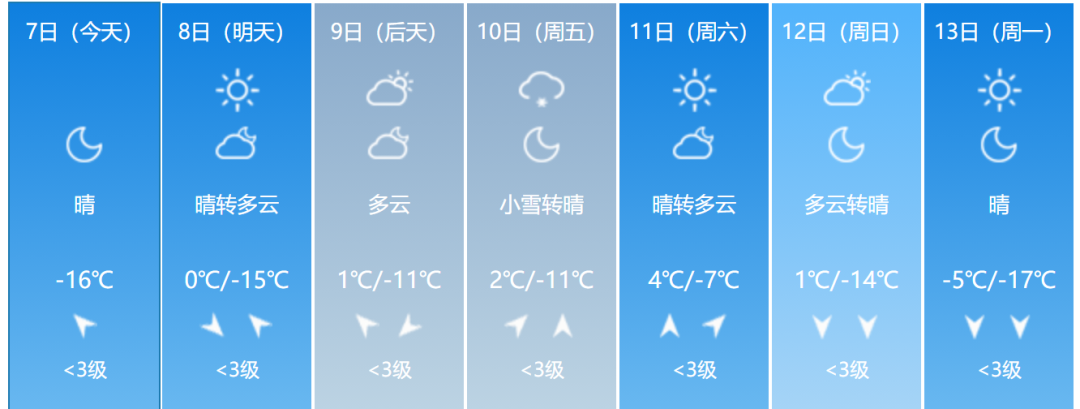 향후 한주간 길림성내 각지 날씨예보