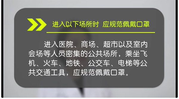 장결은 일상생활에서 다음과 같은 장소에 진입할 때 반드시 마스크를 규범적으로 착용해야 한다고 말했다.