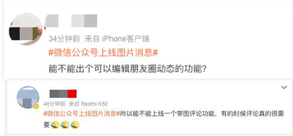 이 새로운 조판방식에 대해 일부 네티즌들은 ‘데자뷰’라는 반응을 보였으며 위챗의 다른 ‘신기능’의 ‘갱신을 촉구’하는 네티즌도 있었다.