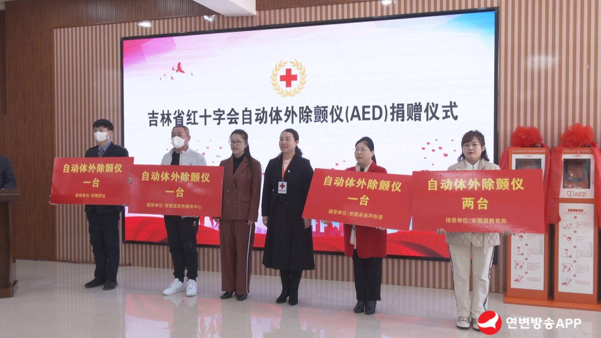 기증식에서는 안도현 교육국, 옹성가두 등 부문에 자동체외세동제거기 5대를 발급했는데 그중 2대는 길림성 적십자회에서 기부하고 나머지 3대는 안도현적십자회에서 자체적으로 구매한 것이다. 접수단위에서 장비를 능숙하게 조작할 수 있도록 하기 위해 현적십자구급대에서는 심페소생술+AED실기현장훈련을 전개했다.