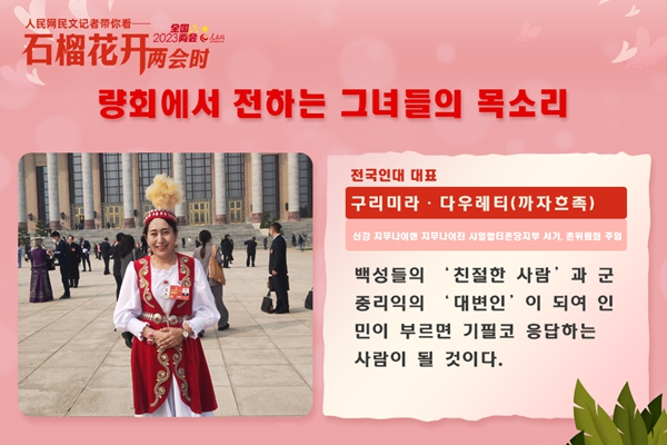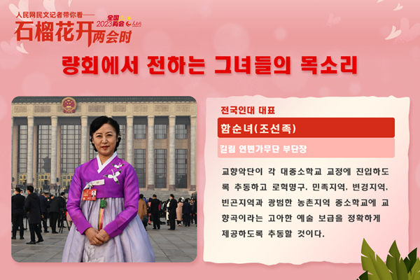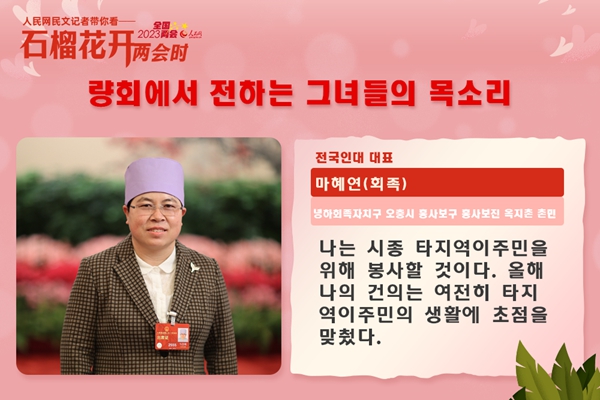 오늘은 ‘3.8’ 국제로동부녀절이다. 요즘 열리고 있는 2023년 전국 두 회의에서 여러 업종에서 온 소수민족녀성 대표위원들은 인민들의 기대를 어깨에 짊어지고 적극적으로 직책을 리행하고 참정의정하면서 두 회의의 아름다운 풍경선을 이루었다. 우리 함께 그녀들의 올해 관심사가 무엇인지 알아보기로 하자.