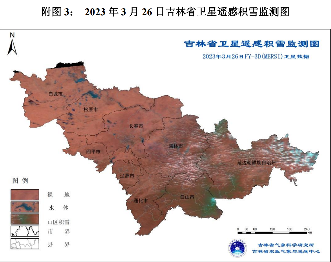 현재 전 성 평원은 기본적으로 눈이 없고 동부의 일부 삼림 지역만 여전히 눈으로 덮여 있는바 3월 19일에 비해 적설 피복률이 15.74% 감소되였다.