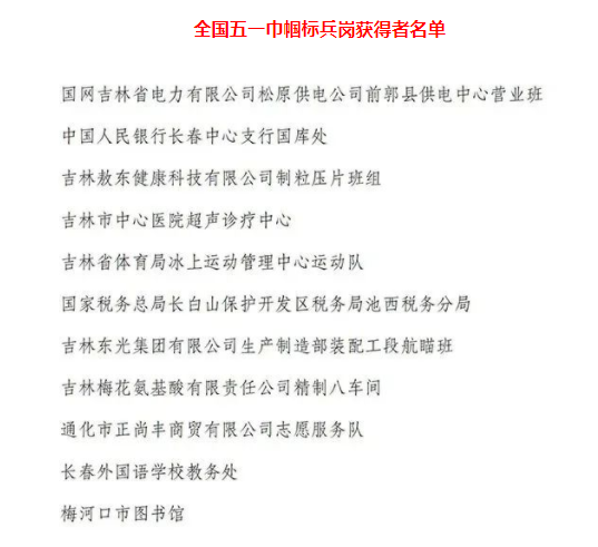길림성에서는 11개 집체와 11명 개인이 표창을 받았는데 그들은 다음과 같다.