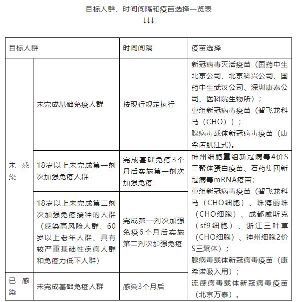 감염되지 않은 대상 군체는 정해진 면역 절차 및 시간 간격에 따라 후속 백신 접종을 완료해야 한다. 그중 기초면역을 완료한 18세 이상 군체는 1차 면역강화 간격을 3개월 이상으로 조정한다.