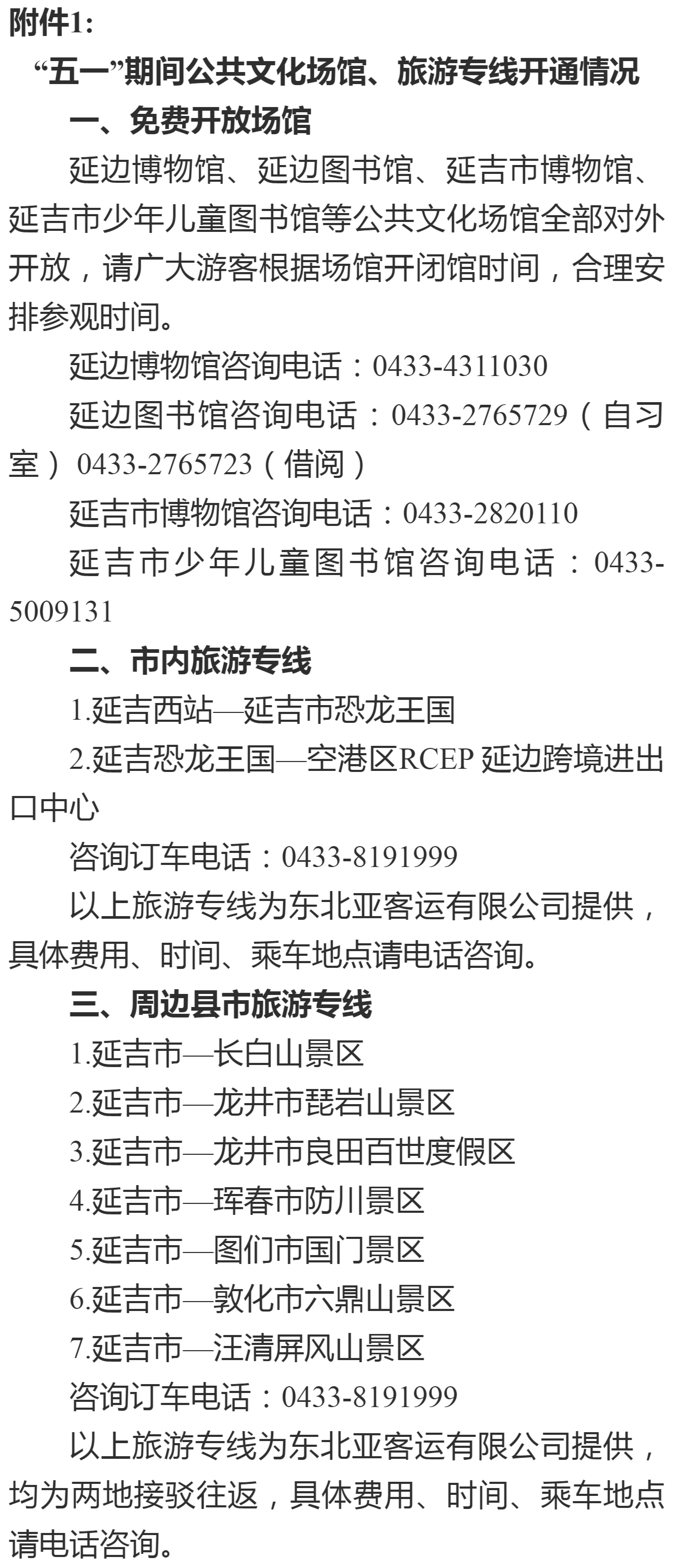 "5.1"절 련휴에 연길에 오시는 것을 환영합니다. 연길 려정이 편리하고 즐겁도록 하고 각종 권익을 충분히 보장받을 수 있도록 하기 위해 우리는 당신에게 24시간 봉사 열선전화를 제공하렵니다.