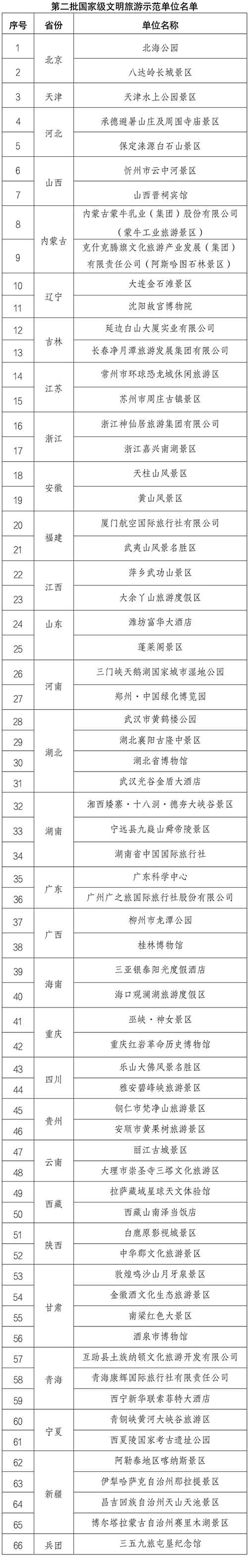 문화관광부는 8일, 국가급 문명관광시범단위(2021년 전염병으로 인해 현장평가를 실시하지 않은 9개 단위와 2022년 신고된 57개 단위 포함) 66개를 발표했다. 그중 길림성에서는 연변 백산호텔실업유한회사와 장춘 정월담관광발전집단유한회사가 이름을 올렸다. 구체적 명단은 다음과 같다.