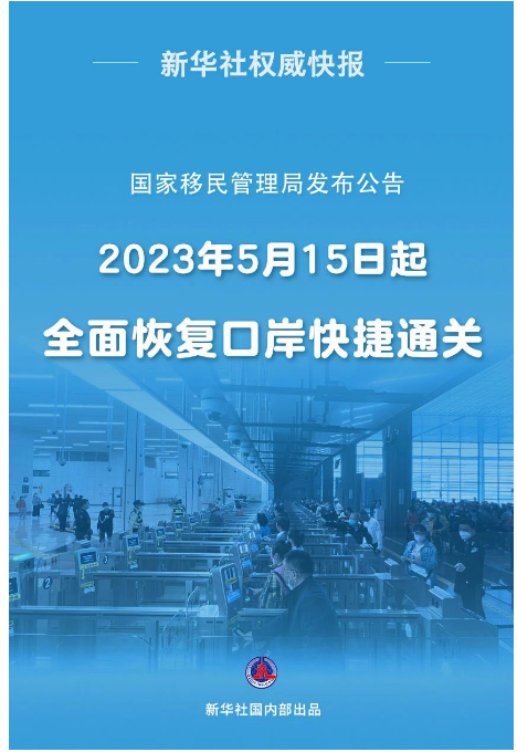 통상구의 신속한 통관을 전면 재개한다. 1월 8일, 향항, 오문 통상구와 린접한 변경검사의 신속한 통관을 재개하는 토대 우에 전염병 이전 방법과 표준요구에 따라 중화인민공화국 일반려권, 향향오문통행증, 대만통행증, 향항 오문 주민 내지 왕래 통행증, 대만주민 대지 왕래 통행증(5년 유효기간), 1년 수차 유효 출입경통행증을 소지한 중국공민을 허가한다. 외국려권과 외국인영주권, 외국전자려권 및 6개월 이상 체류허가를 받은 외국인, 정기적으로 국제선에서 근무하는 중국국적 비행기 승무원과 무비자 입국 혹은 1년 이상(포함) 승무, 재직비자 혹은 체류증명서를 발급받은 외국국적 비행기 승무원은 변경검사 쾌속통로를 거쳐 통행할 수 있다.