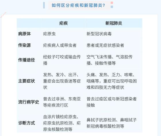 둘째, 일부 신종코로나바이러스감염증은 설사증상이 있고 일부 악성말라리아 환자도 주로 설사증상을 보인다. 말라리아, 특히 악성말라리아의 림상 표현에서 규칙적인 오한은 일반적으로 명확하지 않지만 두통, 피로, 설사, 메스꺼움, 구토 등이 주요 증상이다.