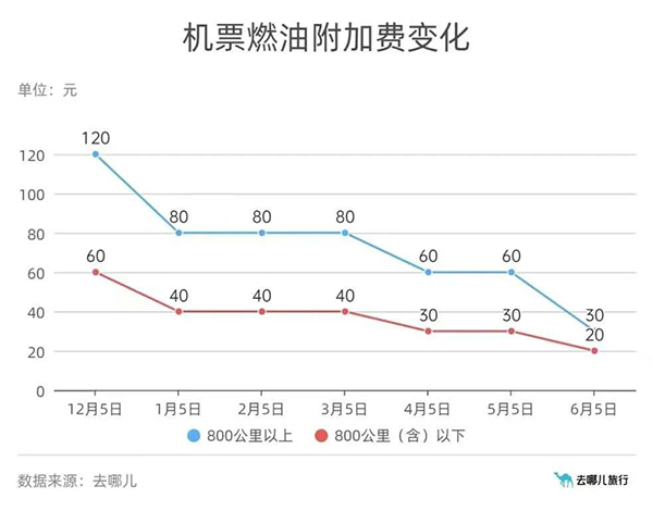 유류할증료가 인하되면서 항공권 가격이 더 싸졌다. “이번 유류할증료 인하, 특히 800km 이상의 항공로선 가격의 인하가 뚜렷해 려행객들은 큰 ‘느낌’을 받을 것이다. 이는 일정한 정도에서 승객들이 단오절 휴가 및 여름방학 출행을 자극할 수 있을 것이다.”라고 민항 업계내 인사 림지걸은 분석했다.