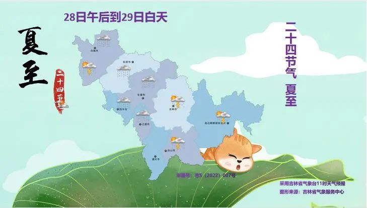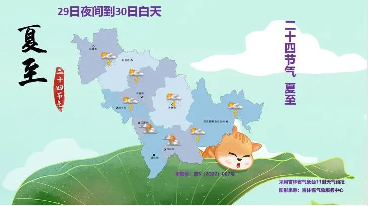 오늘 오후부터 래일 낮까지 길림성은 구름이 많겠고 백성 북부, 송원, 장춘, 사평, 료원에는 적은 비가 내리다가 중등 정도의 비가 내리겠으며 부분적 지역에는 중등 정도의 비가 내리다가 큰비가 내림과 아울러 단시간내 강수, 천둥 우뢰 강풍 혹은 우박 등 강대류날씨가 동반되겠고 기타 지역에는 소나기 혹은 천둥번개를 동반한 소나기가 내리겠다.