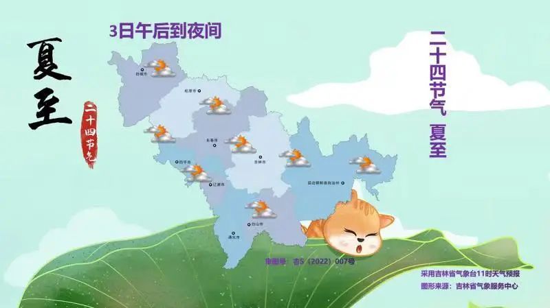 4일 낮, 백성, 송원, 장춘, 사평, 료원, 통화, 백산 서부에 소나기가 내리겠으며 기타 지역은 구름이 많겠다.