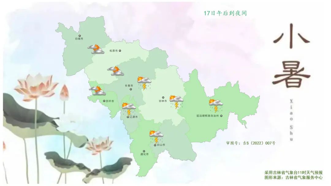 길림성 평균 강수량은 30mm 안팎으로 평년보다 조금 적겠다. 17일 길림성에는 소나기 혹은 천둥번개를 동반한 소나기가 있겠고 18일 중동부에 소나기 혹은 천둥번개를 동반한 소나기가 내리겠다. 20일 길림성 대부분 지역에 소나기 혹은 천둥번개를 동반한 소나기가 내리겠고 21일에는 동부에 소나기 혹은 천둥번개를 동반한 소나기가 내리겠다. 22-23일 길림성 대부분 지역에 적은 비 내지 중등정도의 비가 내리겠고 서부 부분적 지역에는 천둥번개를 동반한 큰 소나기가 내릴 것으로 예상된다.
