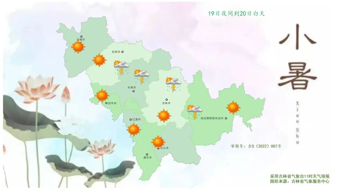 19일 밤부터 20일 낮까지 송원 동부, 장춘, 길림 북부, 연변 서부에 구름이 많겠으며 소나기 혹은 천둥번개를 동반한 소나기가 내리겠고 기타 지역에는 개였다가 이따금 구름이 많겠다.