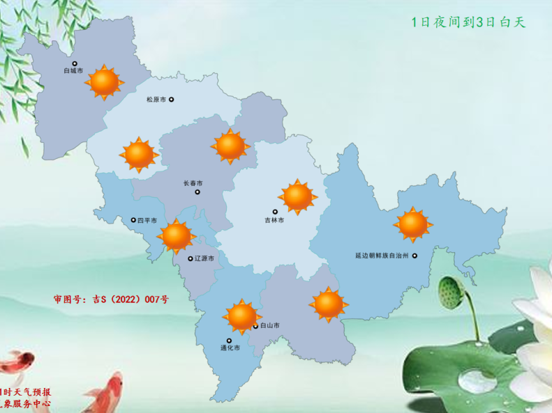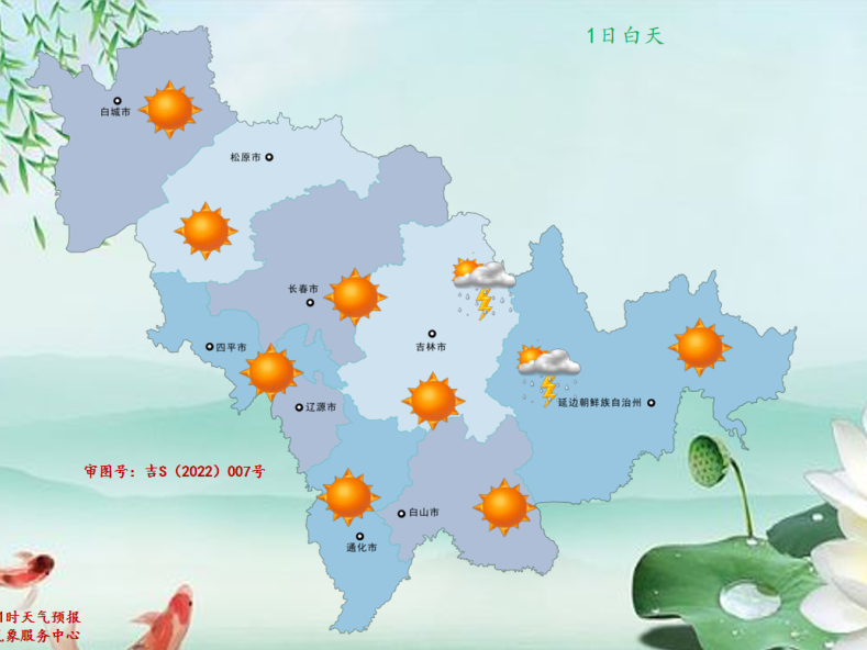 길림성은 구름이 많고 장춘 대부분 지역, 사평 동부, 료원, 길림, 통화, 백산, 연변 서부, 장백산보호구에는 소나기 혹은 천둥번개를 동반한 소나기가 내리겠다.