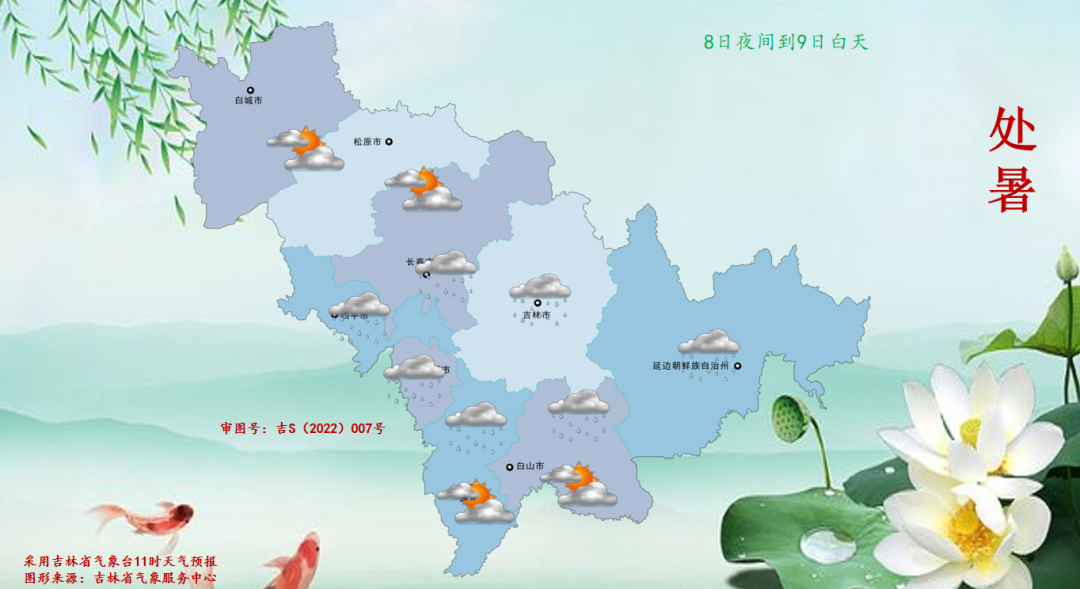 8일 밤부터 9일 낮까지 길림성은 구름이 많다가 때론 흐리겠으며 장춘 동남부, 사평, 료원, 길림, 통화 북부, 백산 북부, 연변, 장백산보호구에는 적은 비가 내리겠다.