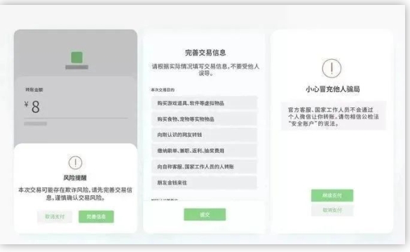 례를 들어 당신이 만약 중고품을 구입했을 때 상대방이 먼저 이체해달라고 요구를 해왔고 결제시 이런 알림이 떴다면 사기일 가능성이 높다. 상대방의 신원과 거래의 진실성을 확인하기 위해 즉시 지불을 중단해야 한다.