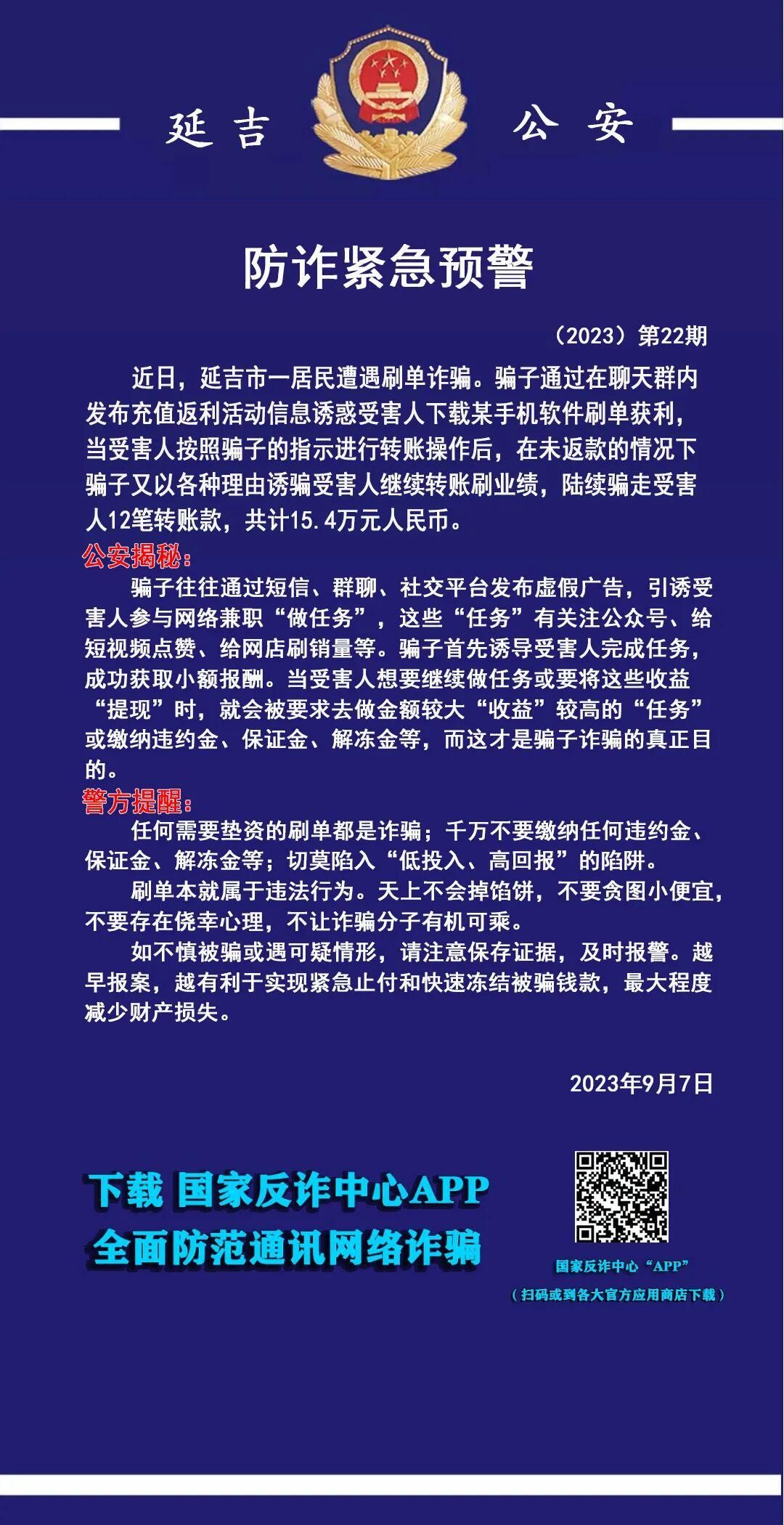 최근 연길시 한 주민이 허위구매 사기를 당했다. 사기군은 채팅그룹을 통해 돈을 충전하면 리윤을 얻는다는 활동정보를 보내 피해자가 모 핸드폰 소프트웨어를 다운받고 거기에서 허위구매하여 리윤을 얻도록 인도하는데 피해자가 사기군의 지시에 따라 계좌이체를 하도록 한 후 돈을 돌려주지 않고 각종 리유를 대면서 계속해 계좌이체하고 업적을 올리도록 인도하면서 피해자에게 12번의 계좌이체를 시켜 15.4만원을 사기쳤다.