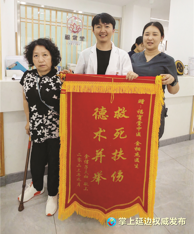 생명의 은인에게 고마운 마음을 전하기 위해 며칠전 리영진은 안해와 함께 김상걸의사를 찾아 축기를 전달했다.