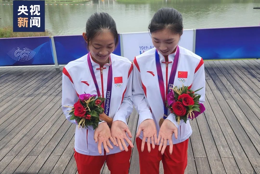 추가기의 손에 난 상처와 굳은살은 조정 선수들의 “특징”이다. 항주 아시아게임에서 금메달을 딴 추가기와 팀 맴버인 구수평은 중앙방송총국 기자에게 자신들의 두손을 펴보였다.
