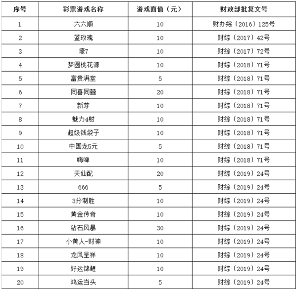 기자가 11일 재정부에서 료해한 바에 의하면 복권게임의 구조를 가일층 최적화하고 복권시장의 건강한 발전을 촉진하기 위해 ‘륙륙순(六六顺)’ 등 41가지 즉석복권게임이 곧 판매를 중단한다고 한다.