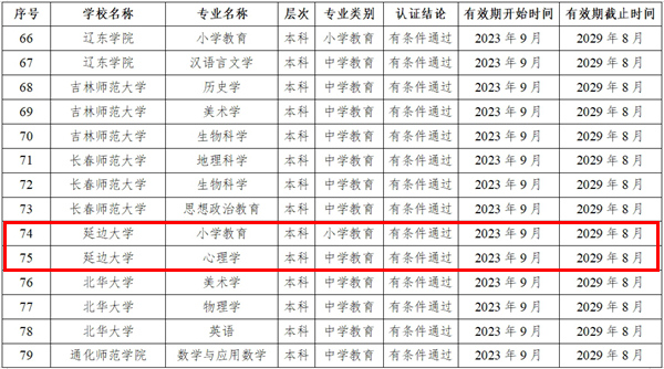 연변대학의 소학교육과 심리학 본과전공이 제2급 전공인증을 통과했는데 유효마감시간은 2029년 8월이다.