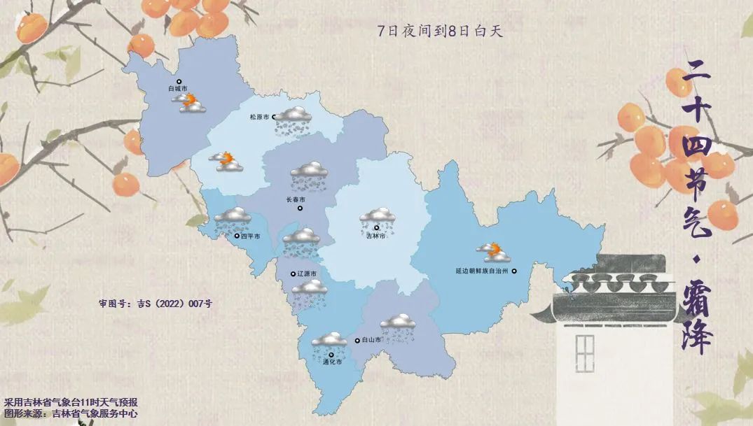 7일, 백성 동부, 송원, 장춘, 사평, 료원, 길림, 통화, 백산, 연변, 장백산보호구에는 적은 눈에서 중등 정도의 눈이 내리겠고 부분적 지역에는 큰 눈이 내릴 것으로 예상된다.