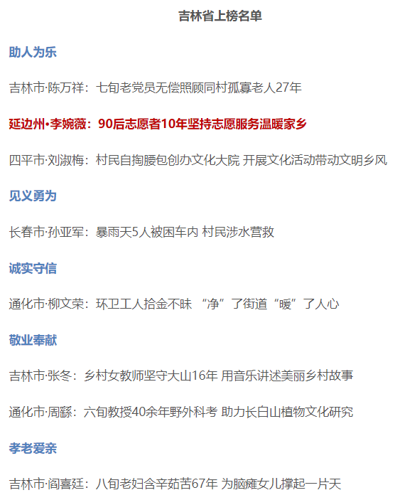 2023년 3분기 '중국본보기' 명단 발표식 및 전국도덕모범 및 신변의 본보기들과의 현장교류활동이 11월 12일에 하북성 창주시에서 개최되였는데 도합 150명(조)이 영광스럽게 명단에 올랐다. 길림성에서는 도합 8명이 '중국본보기'에 이름을 올렸는데 그중 연변주 '90년대생' 지원자 리완미가 영광스럽게 이름을 올려 우리 주에서 유일하게 이 특별한 영예를 획득한 지원자로 되였다. 올해 3분기까지 길림성에서 도합 24명이 명단에 올랐다.