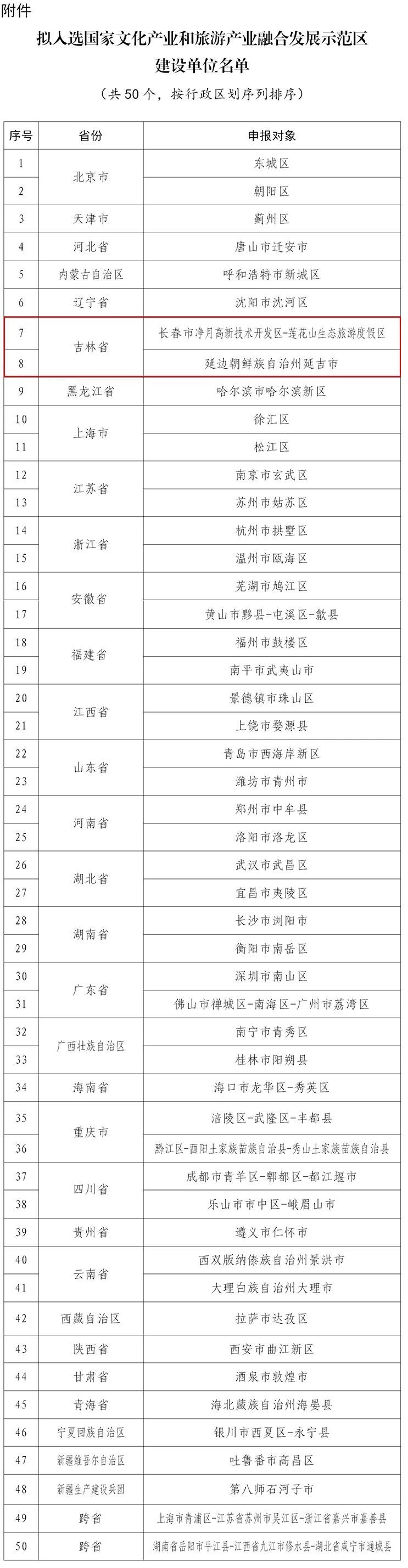 11월 13일 문화및관광부는 국가문화산업과관광산업 융합발전 시범구건설단위 명단에 관해 공시를 발부했다.