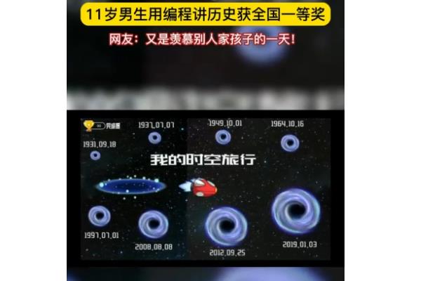 최근 하남성 라하소학교 5학년 남학생이 시공간 려정이라는 설계아이디어를 통해 중국발전력사를 프로그래밍방식으로 보여주었는데 이 작품은 전국 1등상을 수상했다.