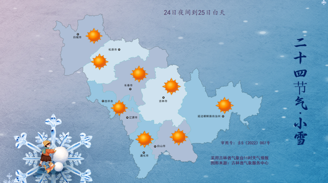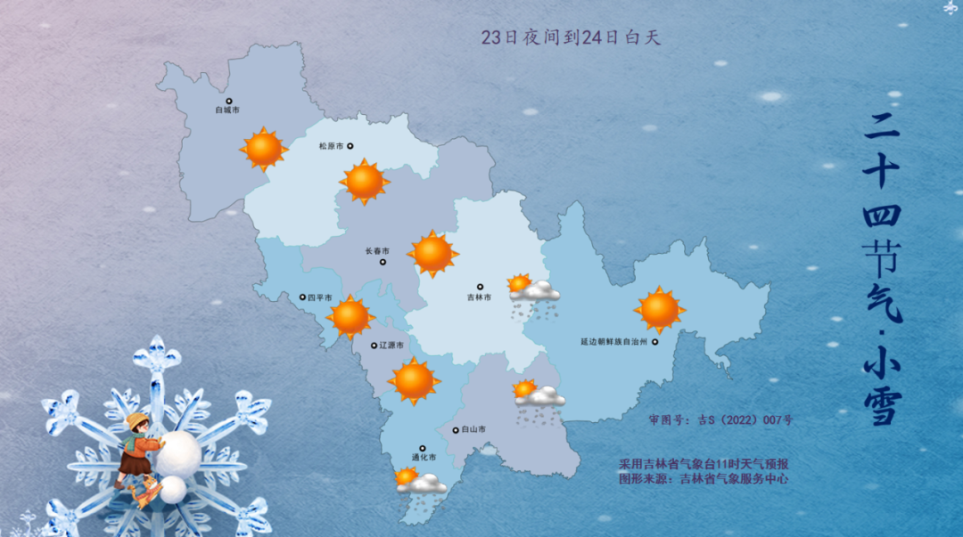 오늘(22일) 길림성 서부지역의 낮 최고기온은 -1℃ 좌우까지 떨어지고 기타 지역의 최고기온은 여전히 7、8℃가량으로 비교적 높았다.