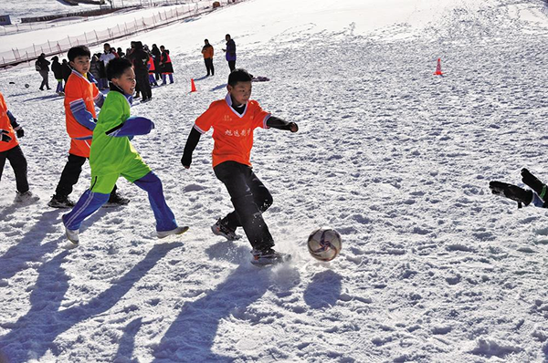 개장현장에서 눈밭축구경기 진행.