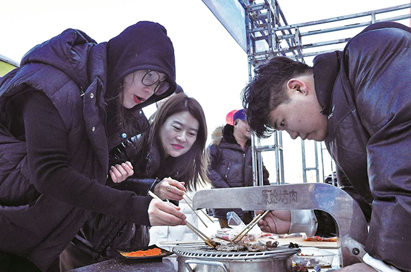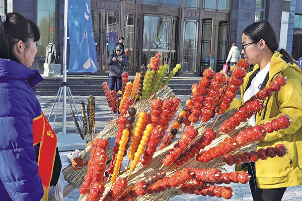 온천테마데이 행사 현장의 동북특색 간식 탕후루.
