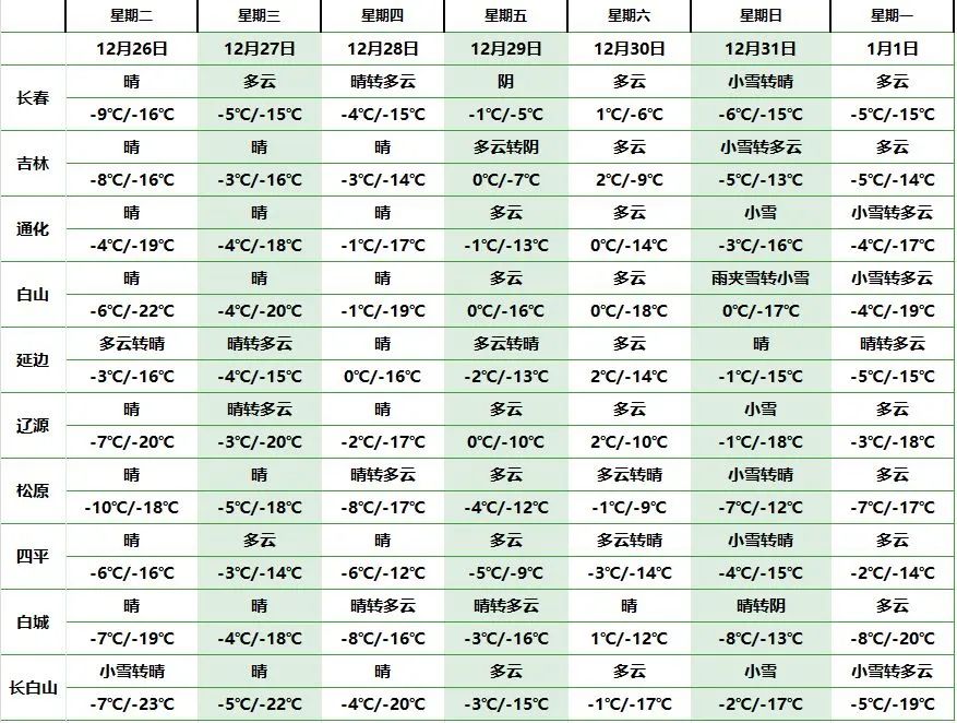 오늘(25일) 오후부터 래일(26일) 낮까지 길림성은 구름이 많이 끼던 데로부터 맑게 개이겠으며 송원 동북부, 장춘 북부와 동부, 길림, 백산, 연변 북부, 장백산보호구에는 적은 눈이 내릴 것으로 예상된다.