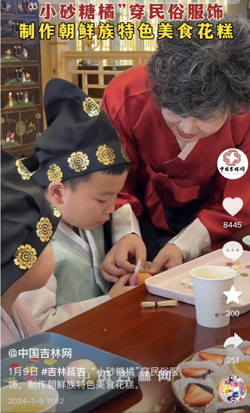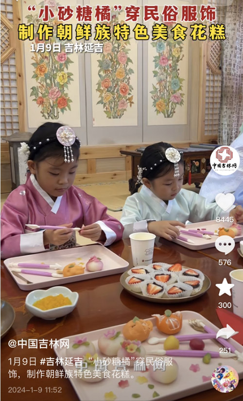 1월 8일, 전국 네티즌이 주목하고 있는 광서 유학단의 11명의 ‘꼬마설탕귤’들이 연변에 도착하여 이틀간의 민속체험을 시작했다. 이번 려정에서 그들은 연길시, 룡정시, 도문시 등을 방문하게 된다. 연변은 민속, 휴가, 변경, 음식 등 다양한 원소를 융합시켜 남방 유학어린이들이 동북 연변의 열정을 느낄 수 있도록 한다. 유학단에 대한 환영을 표하기 위해 연변 네티즌들은 온라인용어로 광서 ‘꼬마설탕귤’, 녕파 ‘꼬마탕원’ 등 칭호에 대응하여 연변 어린이들에게 ‘꼬마꽃떡’이라는 애칭을 붙여줬다. 이번에 연변의 ‘꼬마꽃떡’들이 현장에서 그들을 맞이하고 연변의 ‘룡룡’ 마스코트를 선물했으며 손에 손잡고 역에서 걸어나왔다. ‘꼬마꽃떡’들은 앞으로 며칠간 ‘꼬마설탕귤’들의 유학에 동참한다.