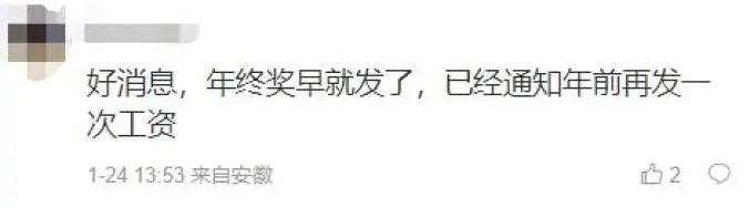 이에 대해 대부분 네티즌들은 1월 월급은 명절 전에 지급된다고 했고 어떤 사람들은 2월 월급까지 사전에 받을 수 있다고 밝혔다.