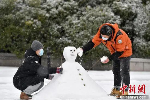 작은 설이 눈과 만났을 때 붉은 등불과 새하얀 눈이 서로 어우러지고 사람들은 눈사람을 만들고 눈싸움을 하면서 활기차게 새해를 맞이한다.