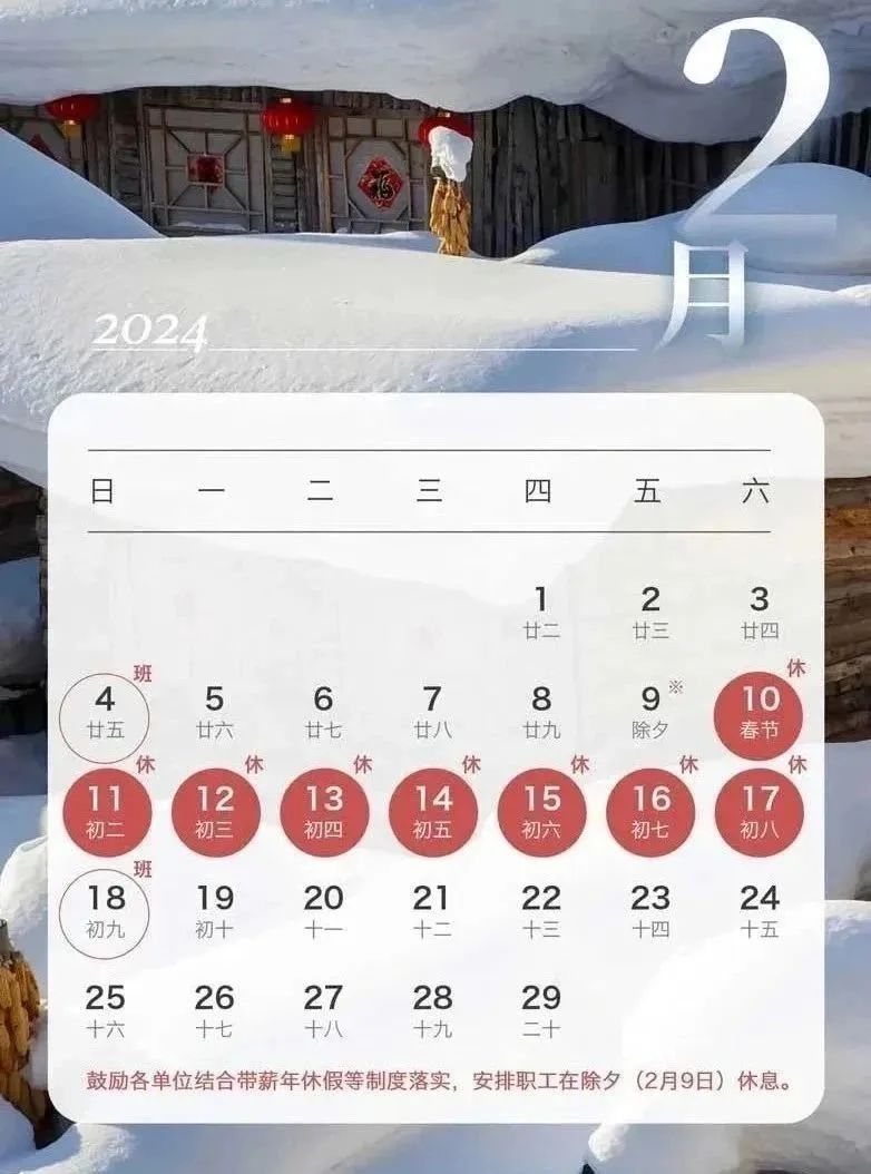 2024년 '음력설려객운수기간'은 1월 26일부터 3월 5일까지 총 40일이다. 2024년 '음력설' 휴가는 2월 10일부터 2월 17일까지 총 8일간이다.