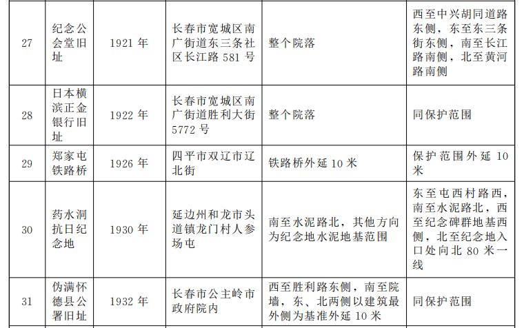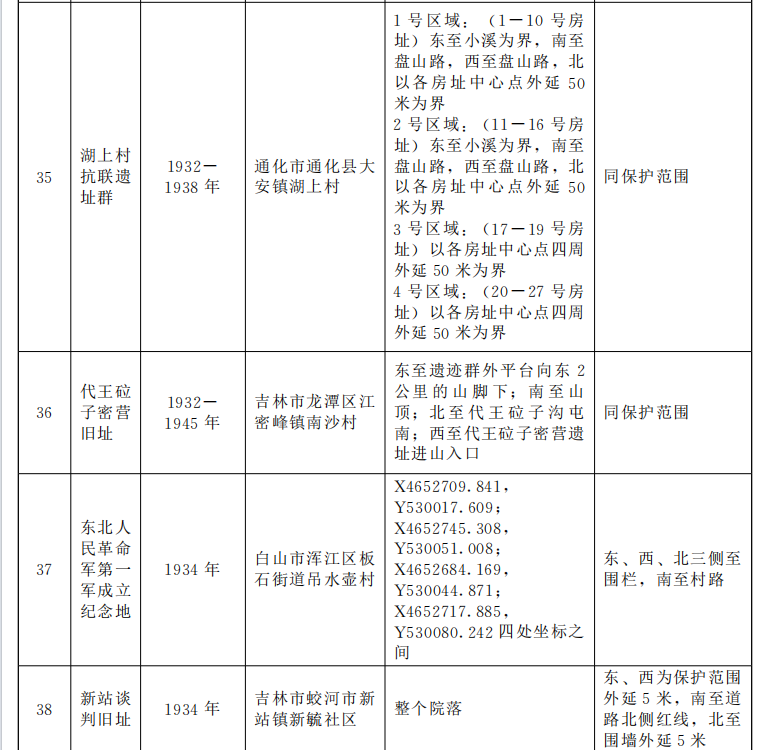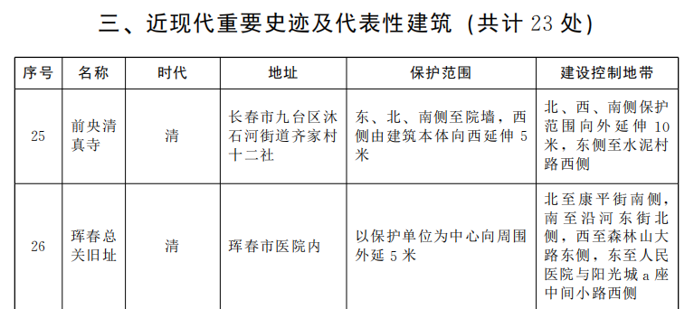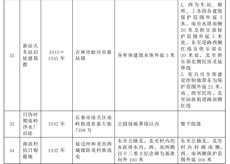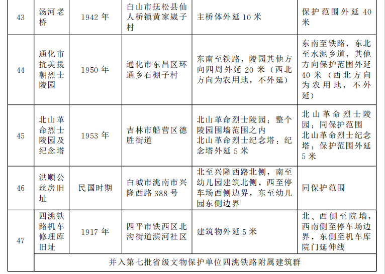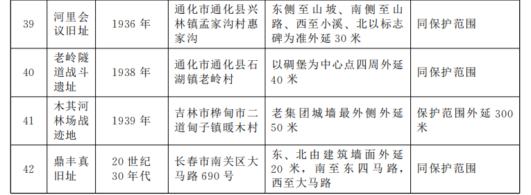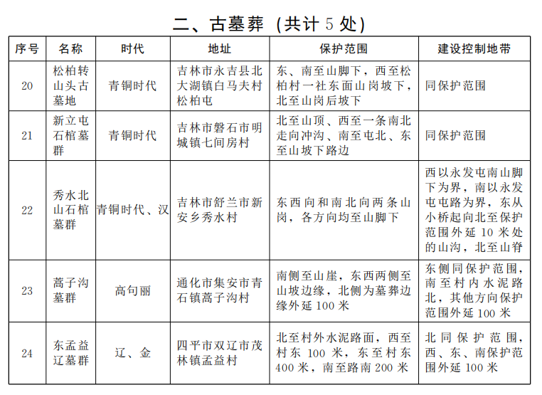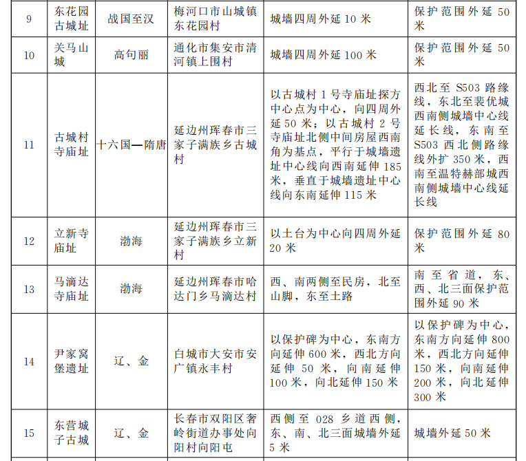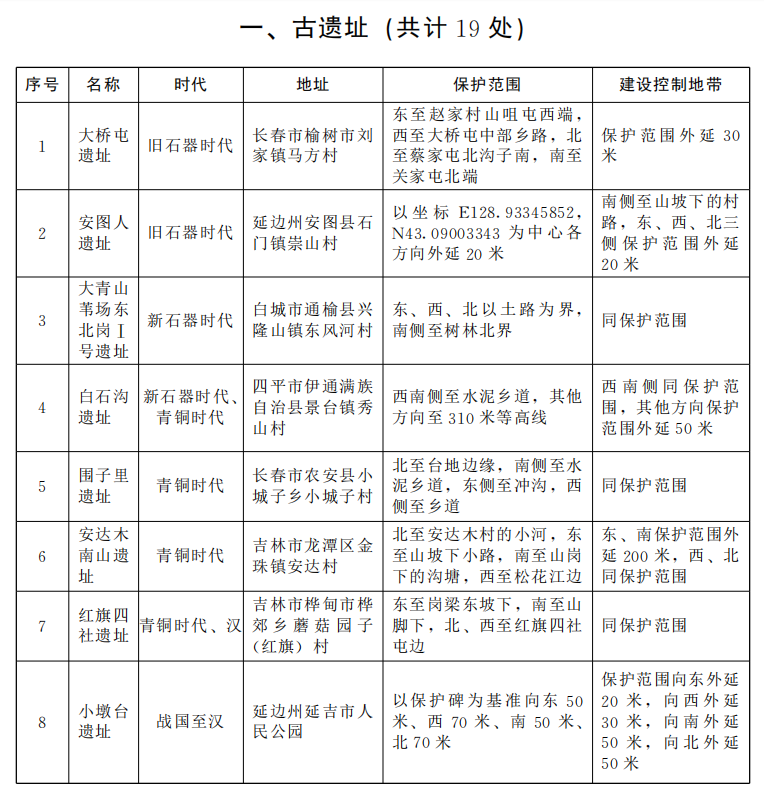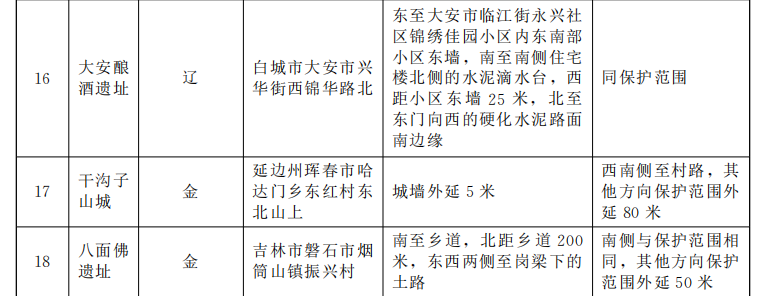 부록: 길림성 제8진 성급 문물보호단위 명록과 보호범위 및 건설통제지대
