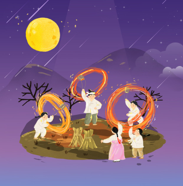 하늘에 보름달이 환하게 떠오르면 사람들은 미리 만들어 놓은 달집에 불을 붙였습니다. 달집이란 달맞이를 위해 준비했던 나무집입니다. 여기에 불을 붙였을 때 잘 타오르면 한 해의 모든 일이 잘 풀린다고 믿었습니다.