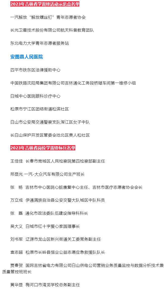 61번째 '뢰봉 따라배우기 활동' 기념일을 맞으며 성당위 선전부는 제1자동차공장 '해방라사못' 청년지원자협회 등 10개 단위를 2023년 길림성 뢰봉 따라배우기 활동 시범점으로, 왕가가 등 10명 동지를 2023년 일터 뢰봉 따라배우기 기준병으로 명명했다.